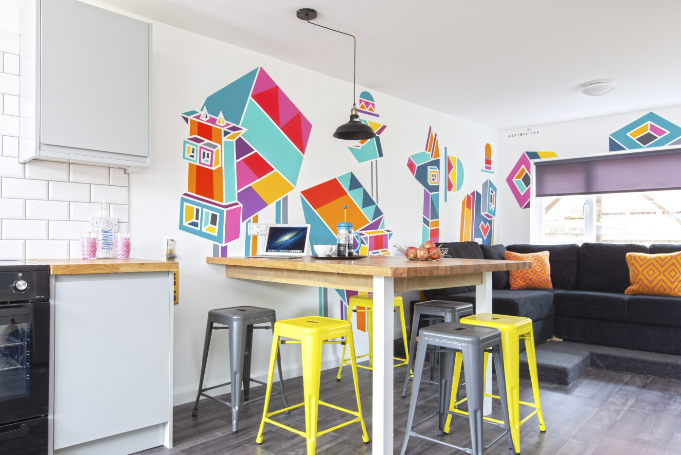 Like all our properties, this house has been thoughtfully interior designed and showcases colorful statement artwork by Brighton-based artist Art & Believe, featuring our original Colour Pop design. All rooms come fully furnished and tailored for student living, ensuring you have everything you need to live comfortably and focus on your studies.